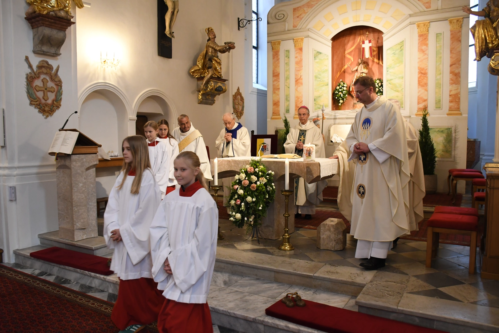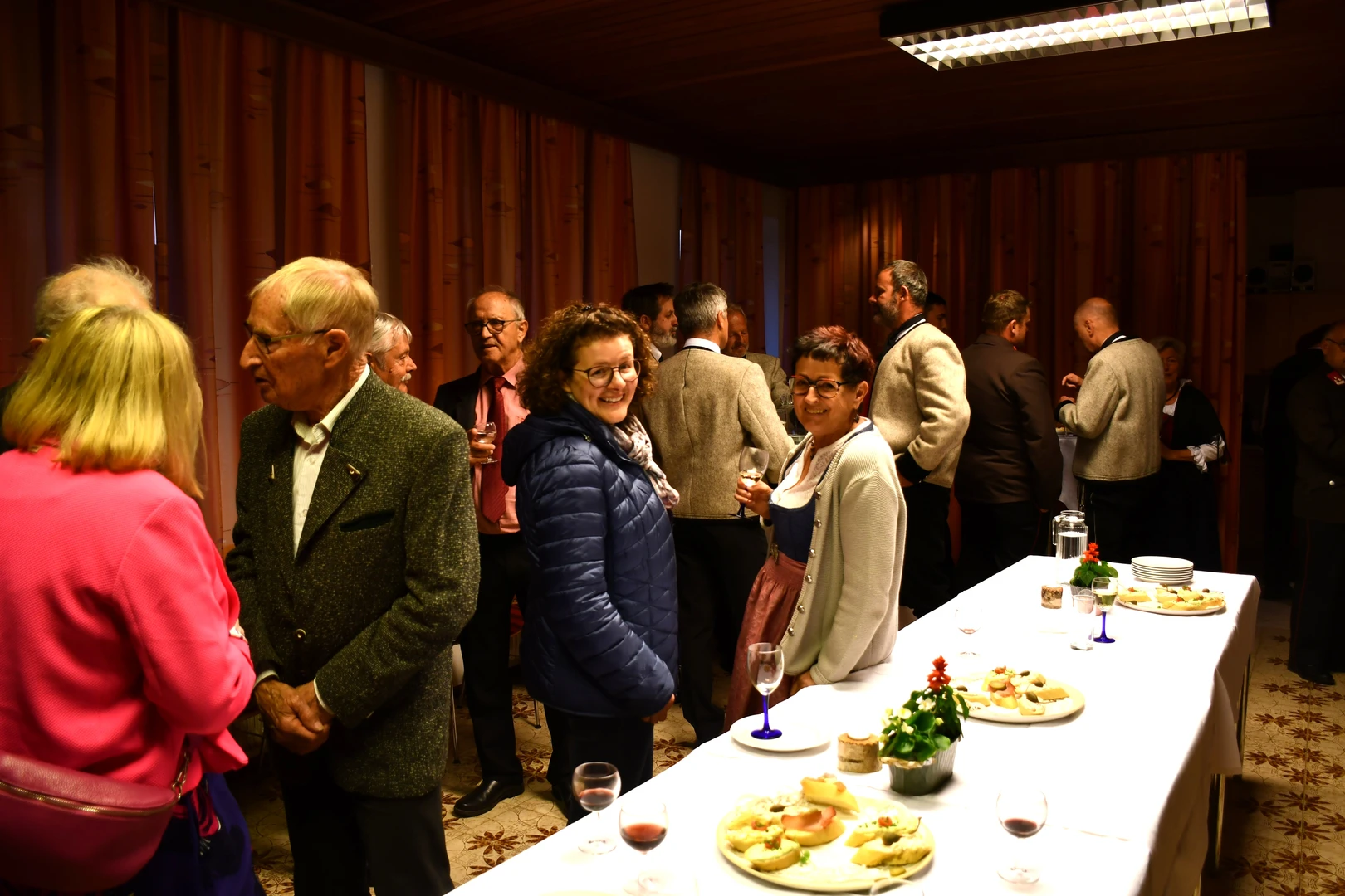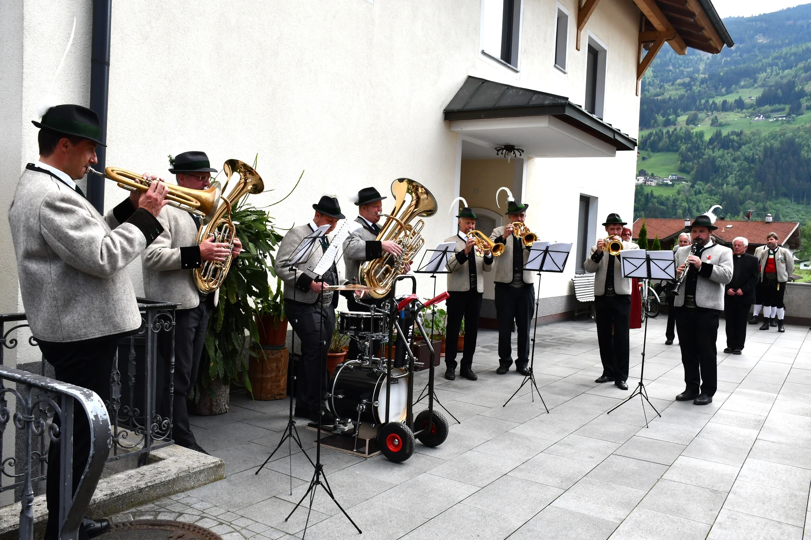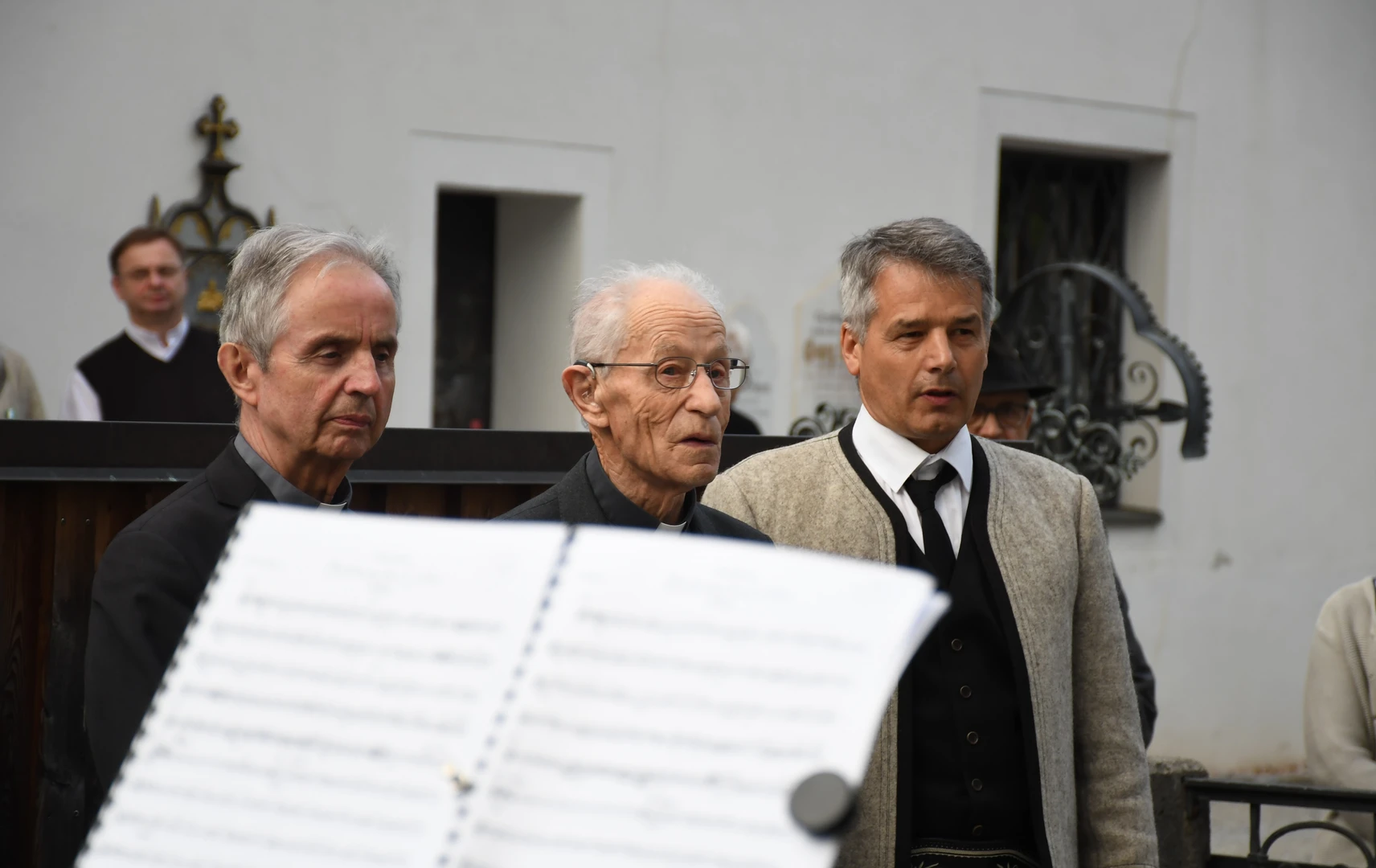 Am Abend fand der feierliche Einzug in die Pfarrkirche mit dem Jubilar, unserem Weihbischof Hansjörg und den Priesterkollegen, vielen Ministranten sowie der Schützen- und Feuerwehrabordnung in die Pfarrkirche statt. Der Kirchenchor und die Bläsergruppe der BMK gestalteten die Hl. Messe hervorragend. Weihbischof Hansjörg hielt eine beindruckende Predigt über Pfarrer Hansl Ebster: Vor allem bedankte er sich bei Hansl für die vielen Jahre der Seelsorge in der Erzdiözese Salzburg, deren ältester Priester er zurzeit ist. Er brennt als Priester für Christus durch und durch! Er schaut auf Christus mit Herz und Verstand, er vertraut und hört auf ihn, er denkt an Gott und geht mit ihm… WB Hansjörg erzählte auch, dass er zum Stadtbild von Salzburg gehört, da er immer noch mit dem Fahrrad dort unterwegs ist. Zum Abschluss die herzlichsten Glückwünsche zu diesem hohen runden Geburtstag und Gottes reichen Segen im Namen der gesamten Pfarrgemeinde! Nach dem Gottesdienst konnten alle KirchenbesucherInnen noch persönlich gratulieren. Der Kirchenchor sang ihm noch ein Ständchen und vor dem Widum spielten die Bläser einige Stücke. Das freute Hansl besonders! Carla Mojto hatte am selben Tag Geburtstag, so gab es auch für sie viele Glückwünsche von allen. Mit einer feinen Agape im Pfarrhof klang dieser Festabend gesellig aus.