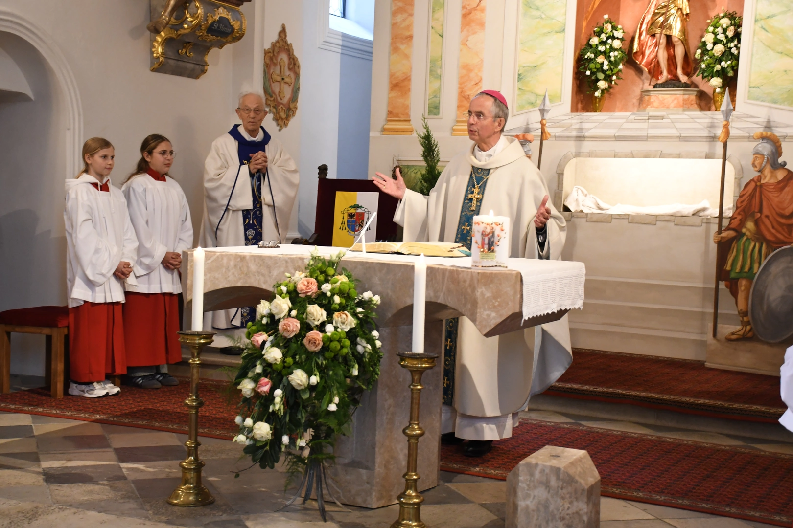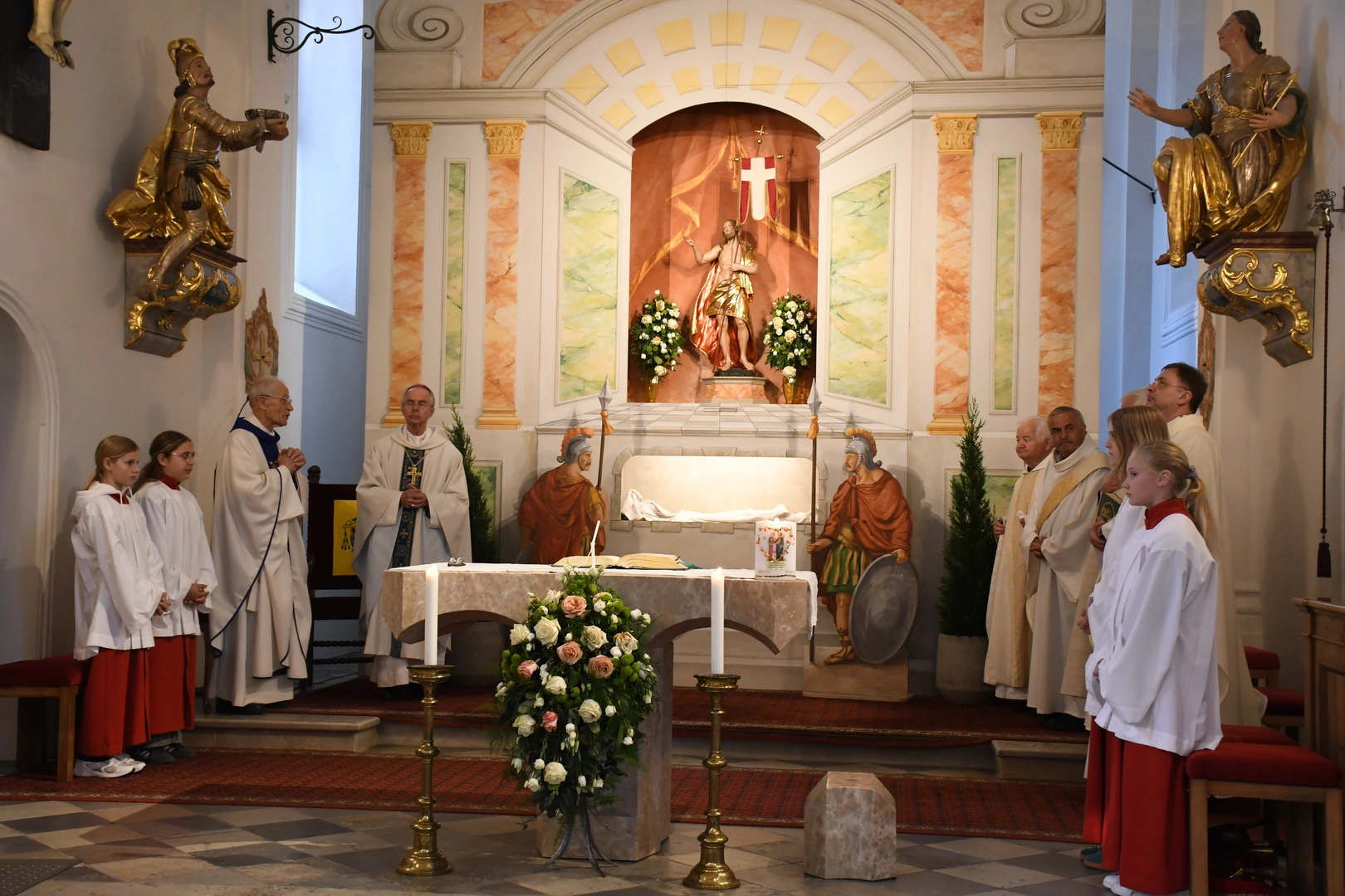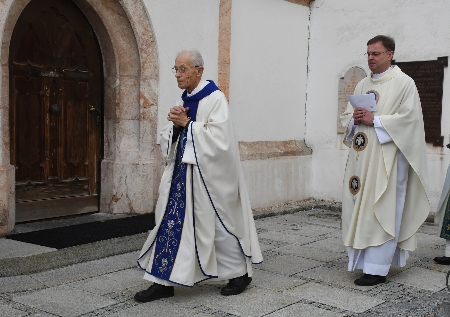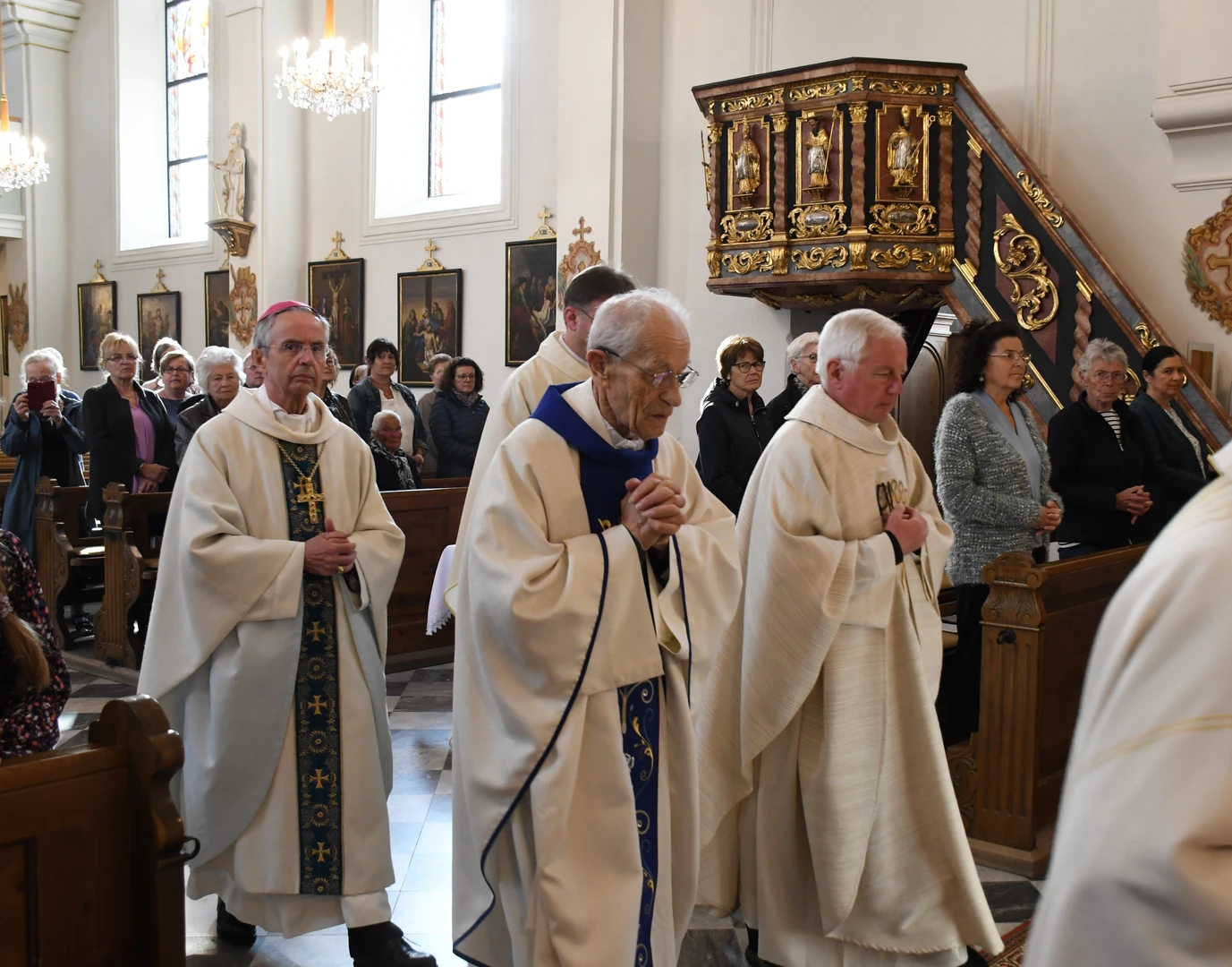 Am Abend fand der feierliche Einzug in die Pfarrkirche mit dem Jubilar, unserem Weihbischof Hansjörg und den Priesterkollegen, vielen Ministranten sowie der Schützen- und Feuerwehrabordnung in die Pfarrkirche statt. Der Kirchenchor und die Bläsergruppe der BMK gestalteten die Hl. Messe hervorragend. Weihbischof Hansjörg hielt eine beindruckende Predigt über Pfarrer Hansl Ebster: Vor allem bedankte er sich bei Hansl für die vielen Jahre der Seelsorge in der Erzdiözese Salzburg, deren ältester Priester er zurzeit ist. Er brennt als Priester für Christus durch und durch! Er schaut auf Christus mit Herz und Verstand, er vertraut und hört auf ihn, er denkt an Gott und geht mit ihm… WB Hansjörg erzählte auch, dass er zum Stadtbild von Salzburg gehört, da er immer noch mit dem Fahrrad dort unterwegs ist. Zum Abschluss die herzlichsten Glückwünsche zu diesem hohen runden Geburtstag und Gottes reichen Segen im Namen der gesamten Pfarrgemeinde! Nach dem Gottesdienst konnten alle KirchenbesucherInnen noch persönlich gratulieren. Der Kirchenchor sang ihm noch ein Ständchen und vor dem Widum spielten die Bläser einige Stücke. Das freute Hansl besonders! Carla Mojto hatte am selben Tag Geburtstag, so gab es auch für sie viele Glückwünsche von allen. Mit einer feinen Agape im Pfarrhof klang dieser Festabend gesellig aus.