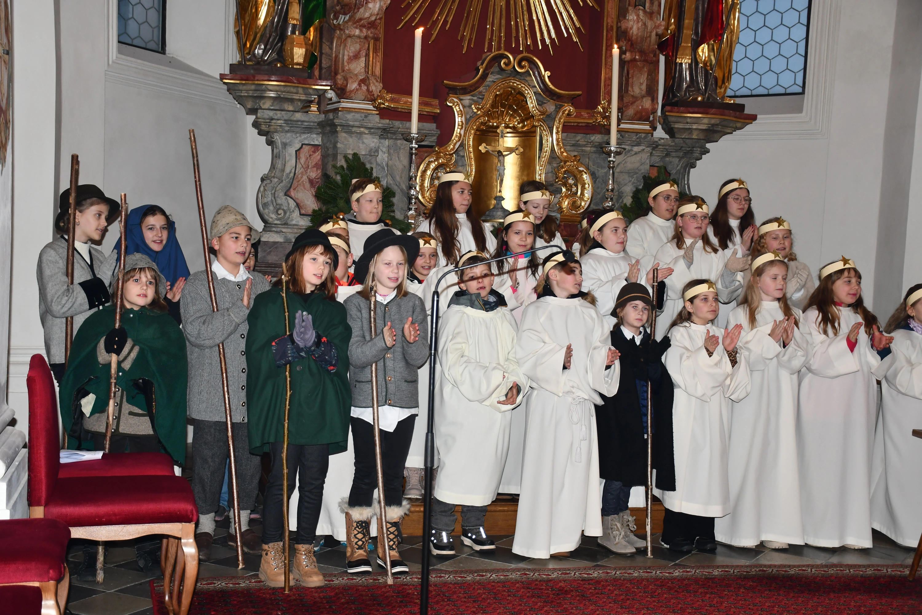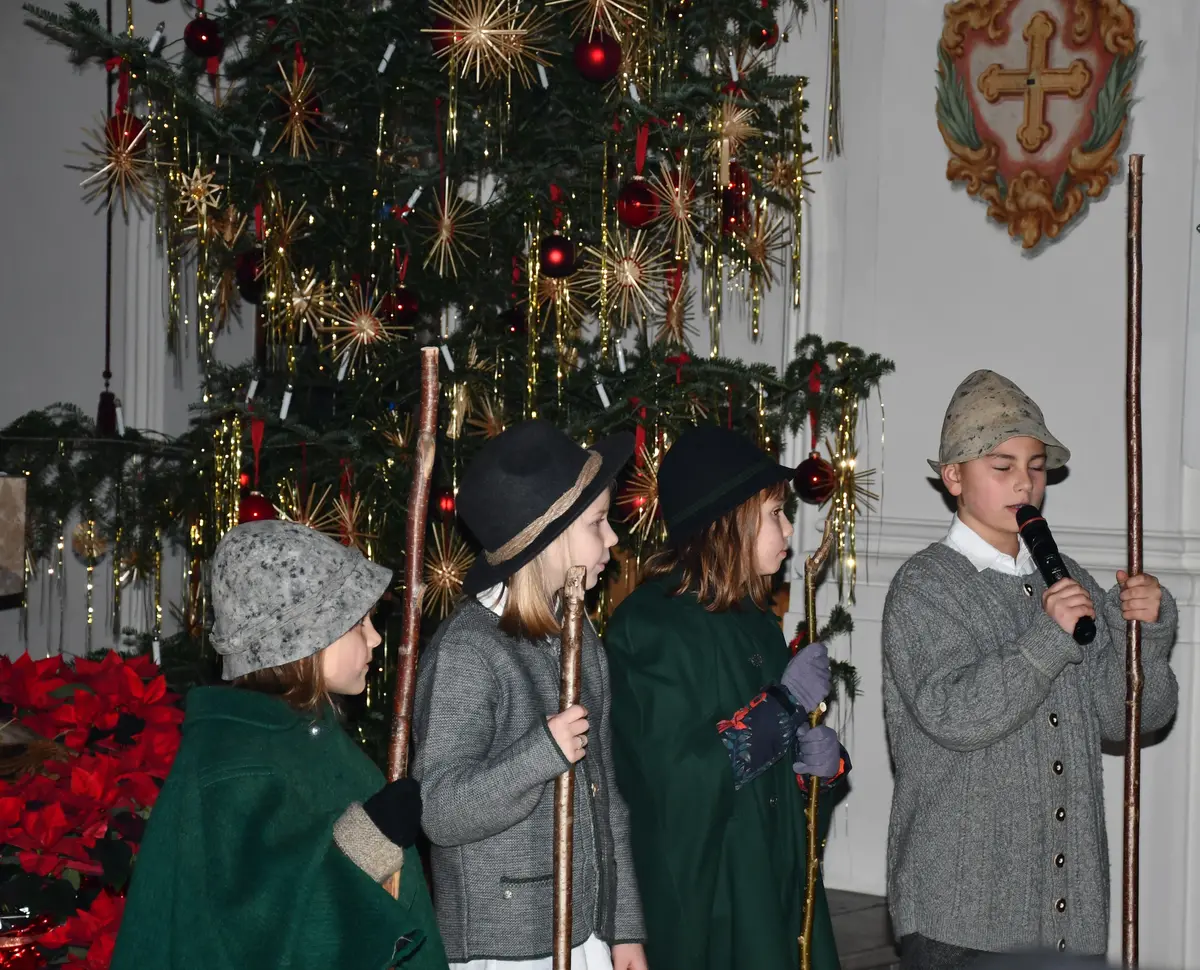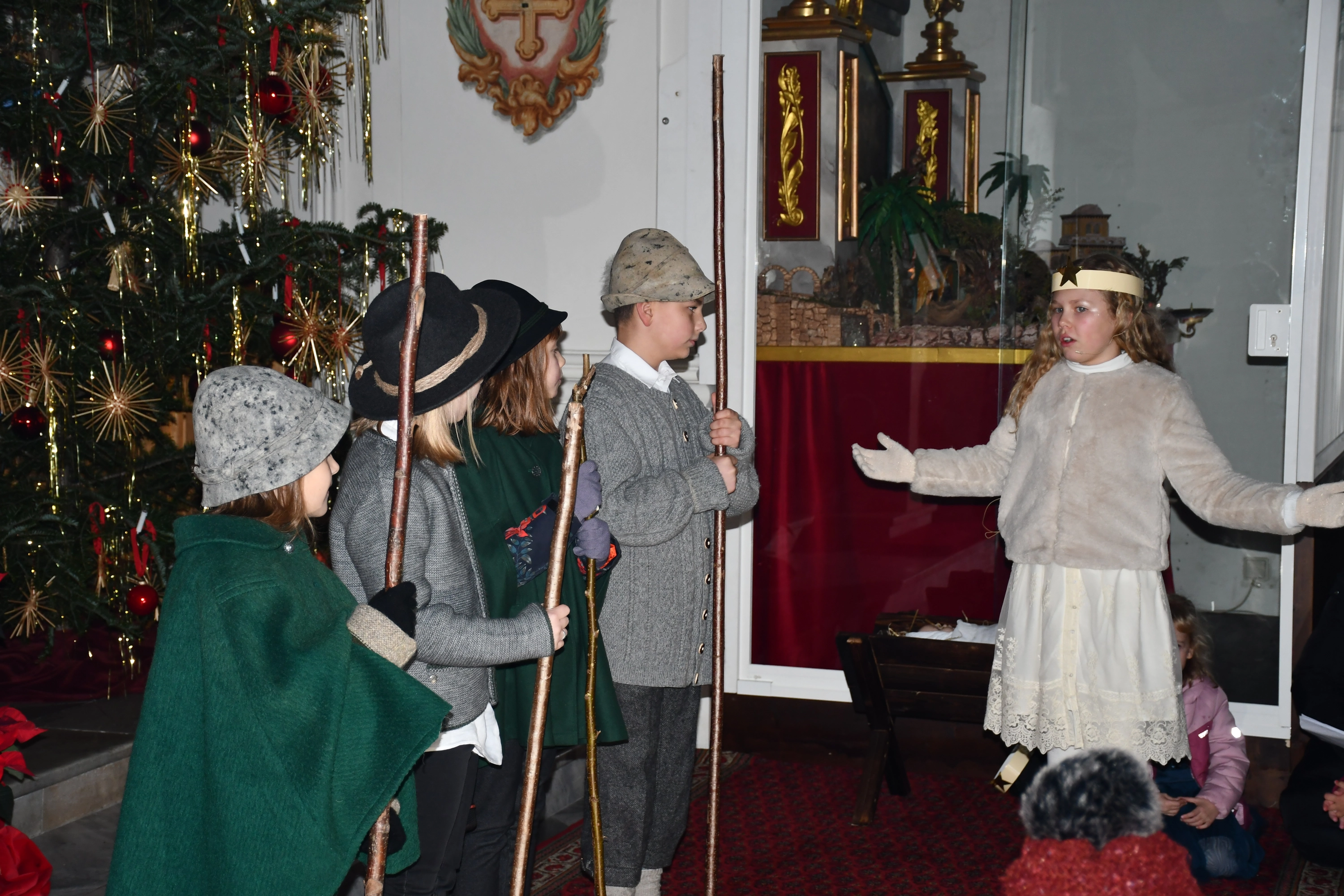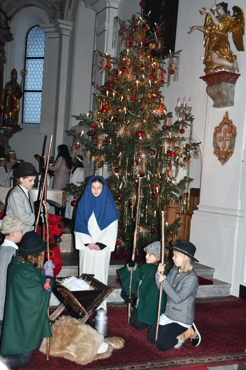 Die Weihnachtsgeschichte führten die Kinder mit viel Eifer wunderbar auf. Im Altarraum sang der Engelchor mit Josefine und erfreute die vielen ZuhörerInnen mit schönen Liedern. Hiermit ein herzliches Vergelts Gott für den großartigen Einsatz. Diese berührende Feier ist aus dem „Weihnachtsprogramm“ nicht mehr wegzudenken!