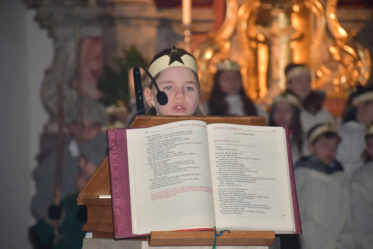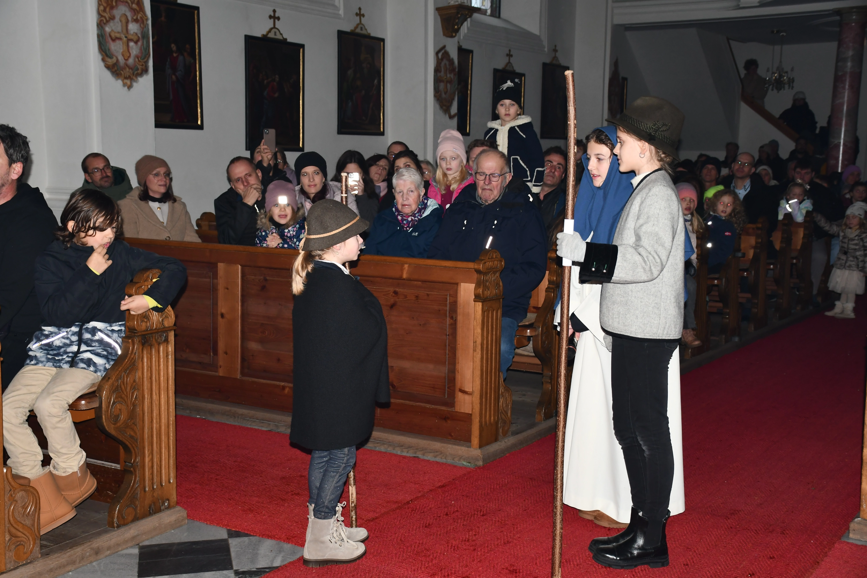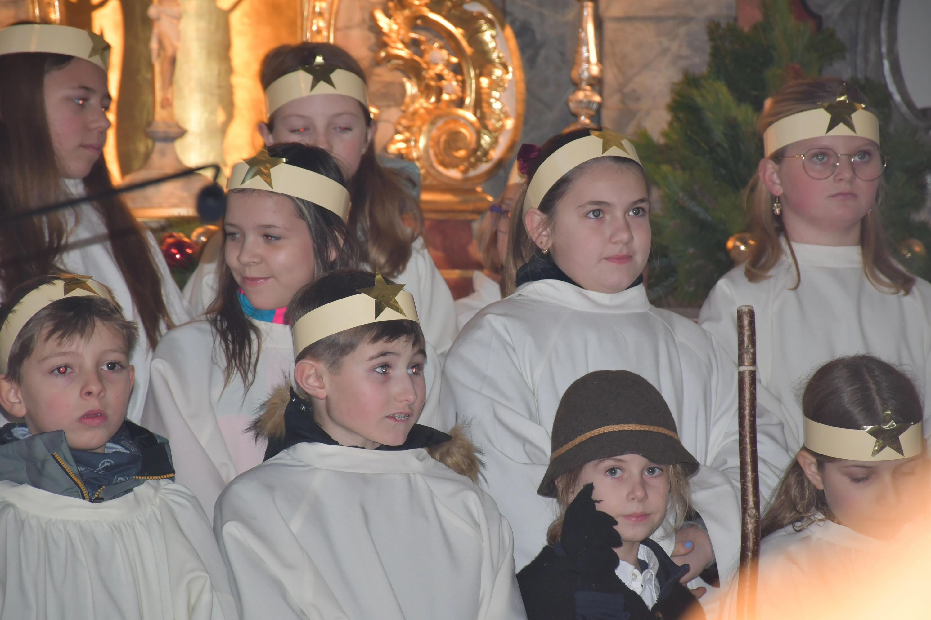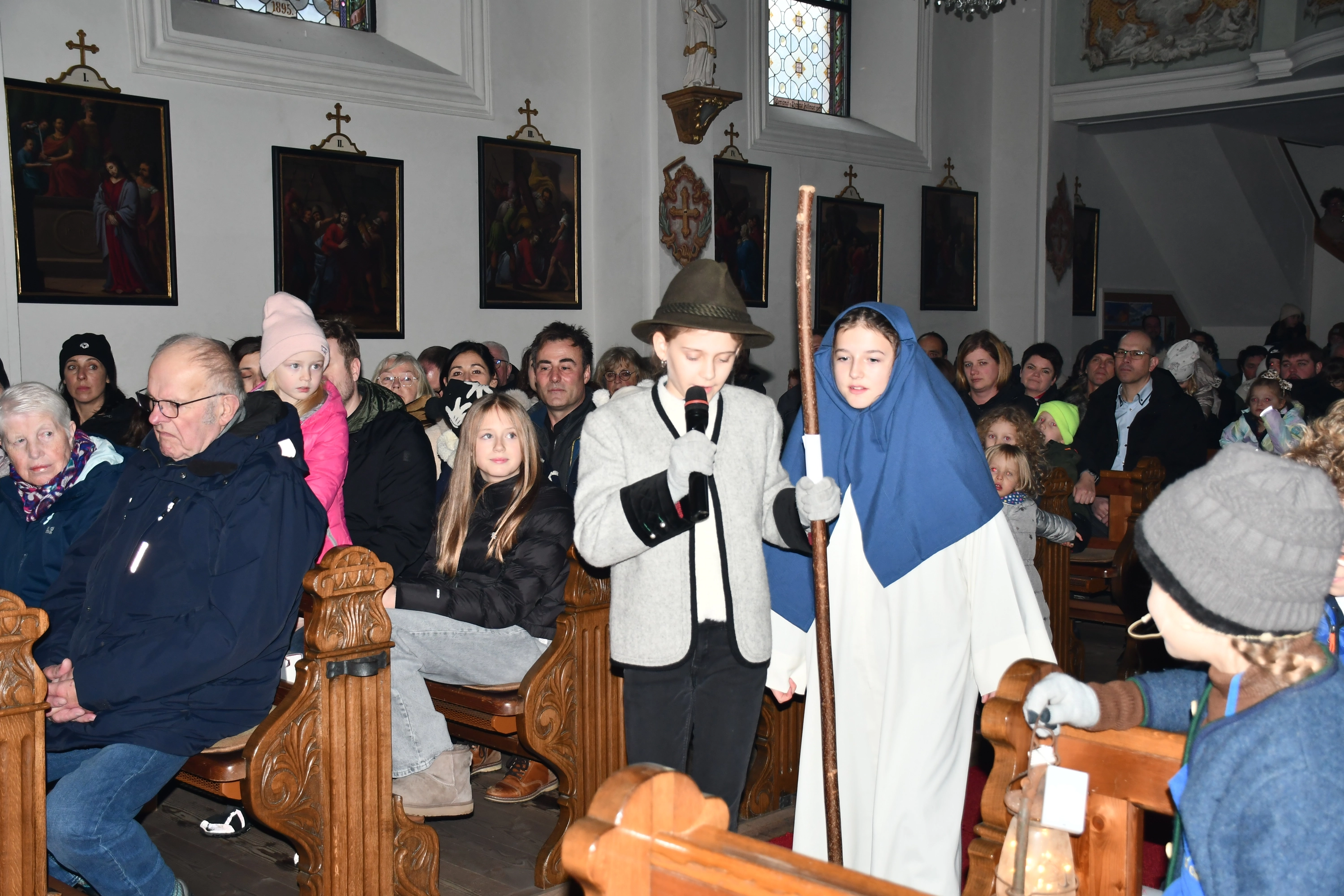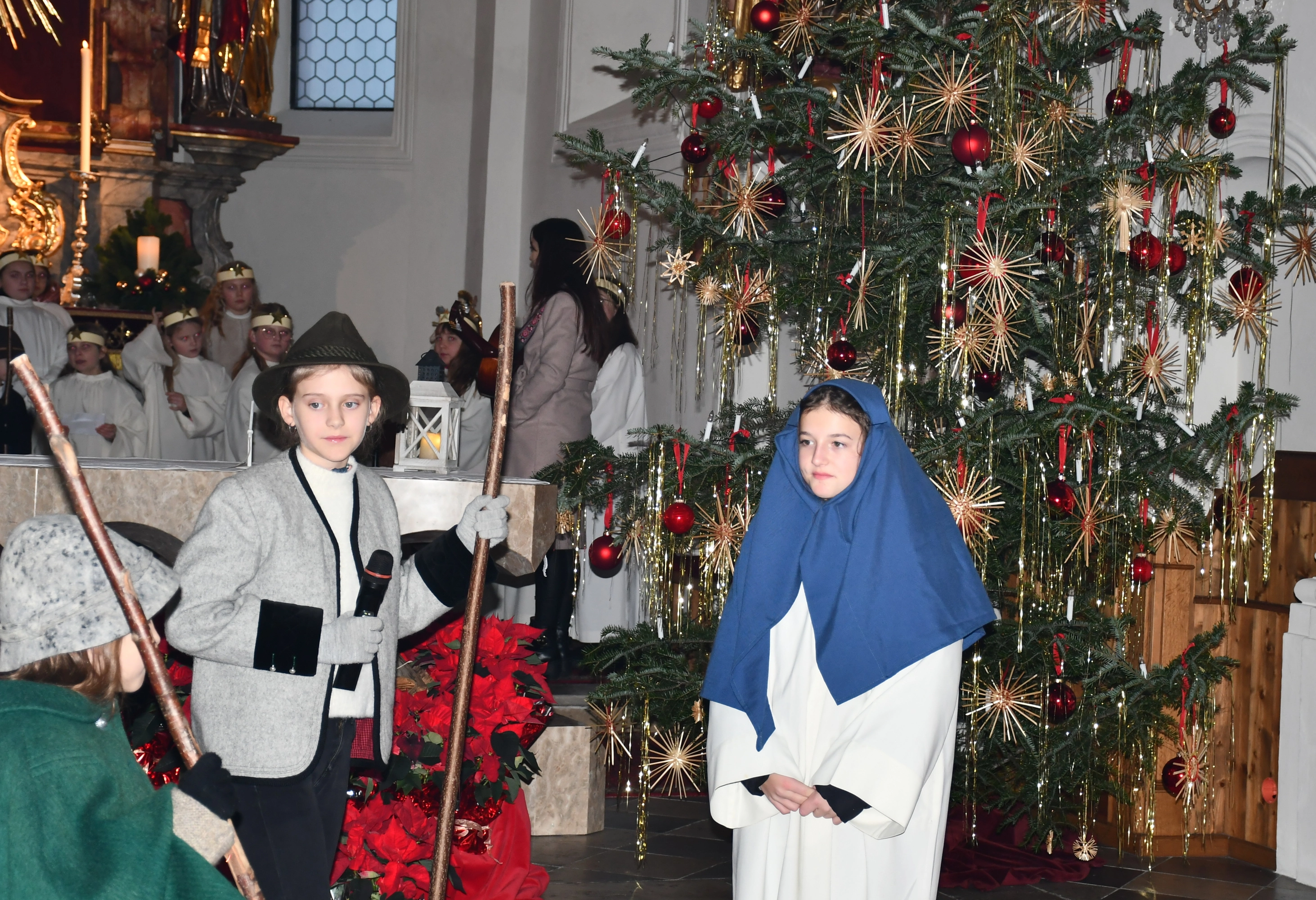 Die Weihnachtsgeschichte führten die Kinder mit viel Eifer wunderbar auf. Im Altarraum sang der Engelchor mit Josefine und erfreute die vielen ZuhörerInnen mit schönen Liedern. Hiermit ein herzliches Vergelts Gott für den großartigen Einsatz. Diese berührende Feier ist aus dem „Weihnachtsprogramm“ nicht mehr wegzudenken!