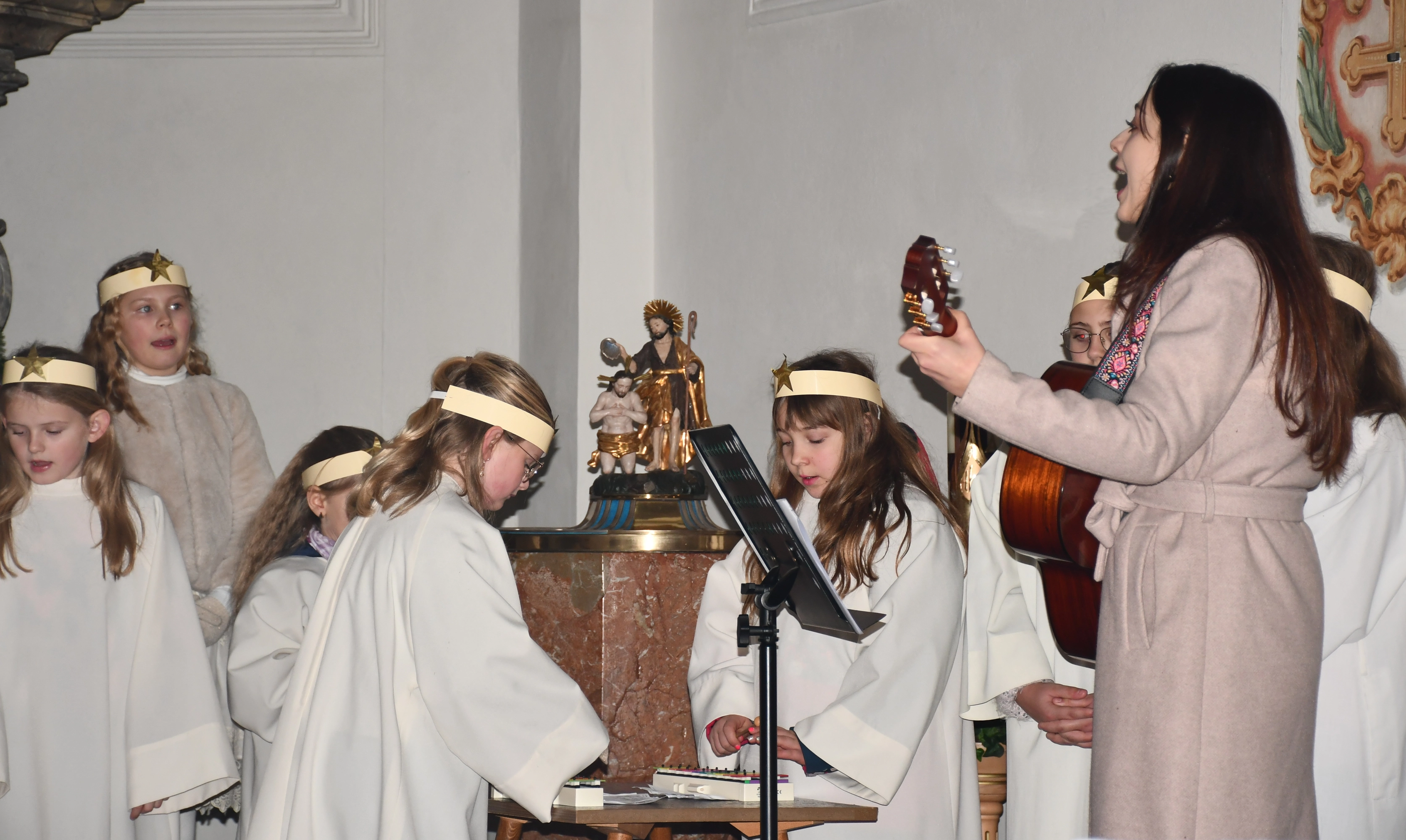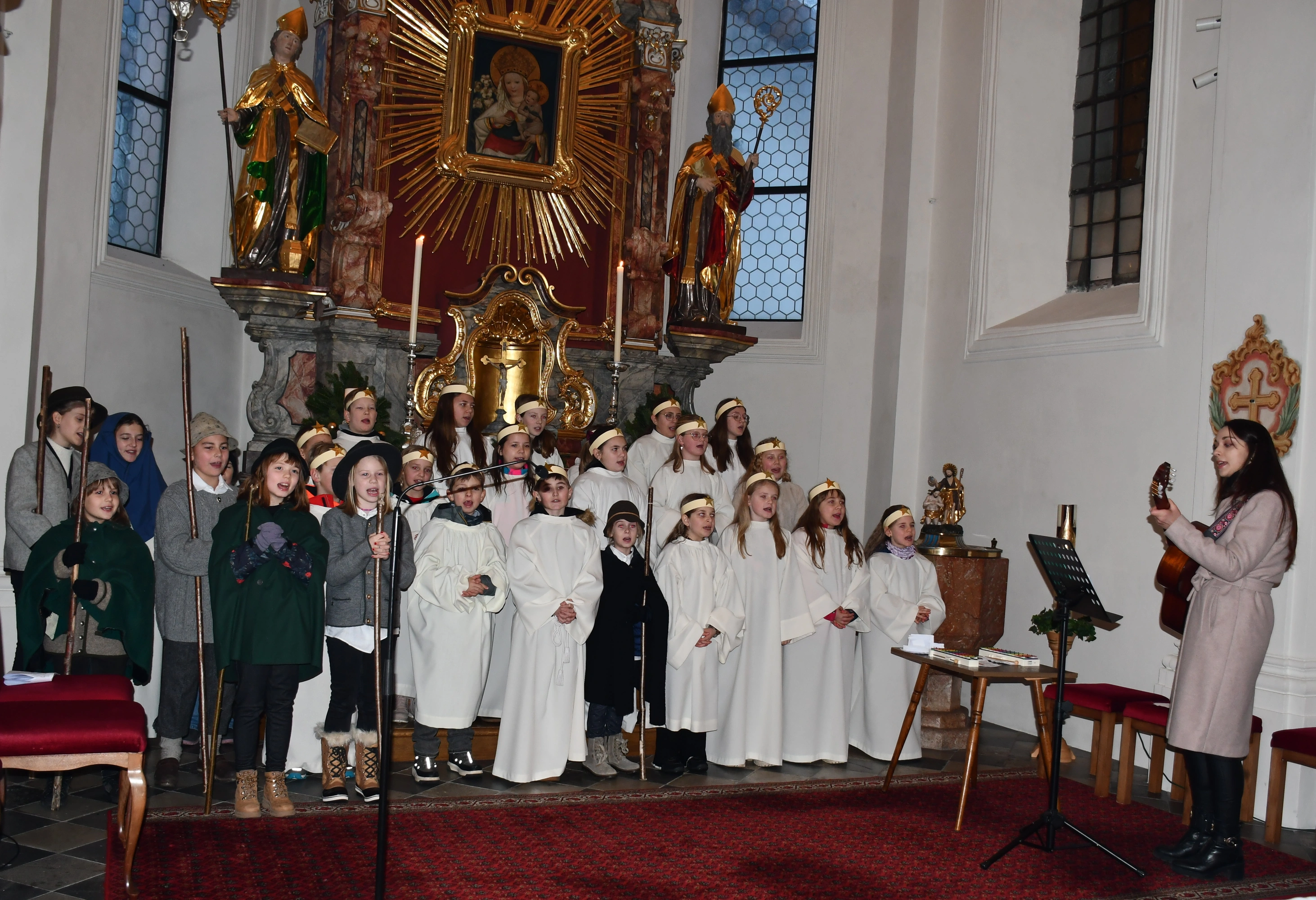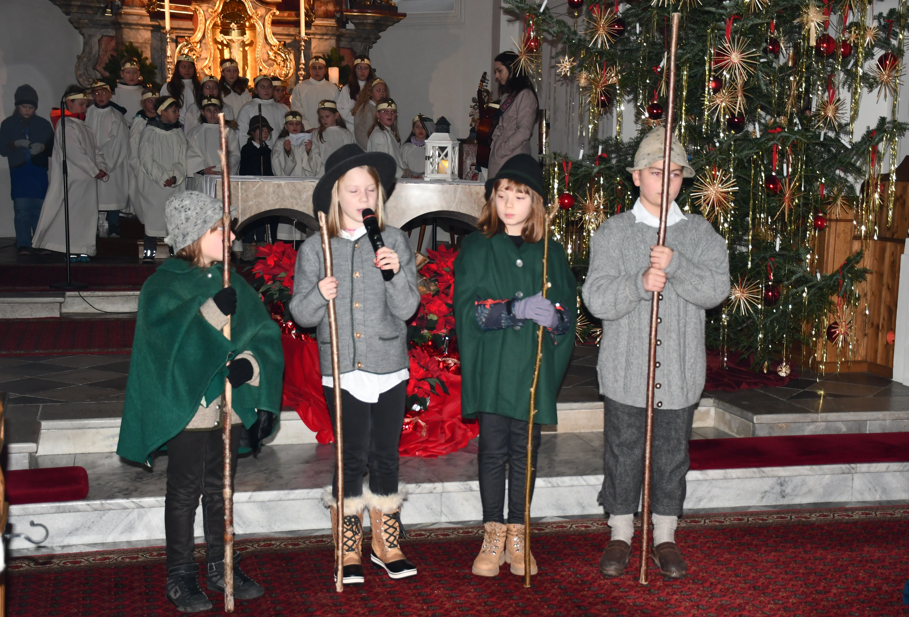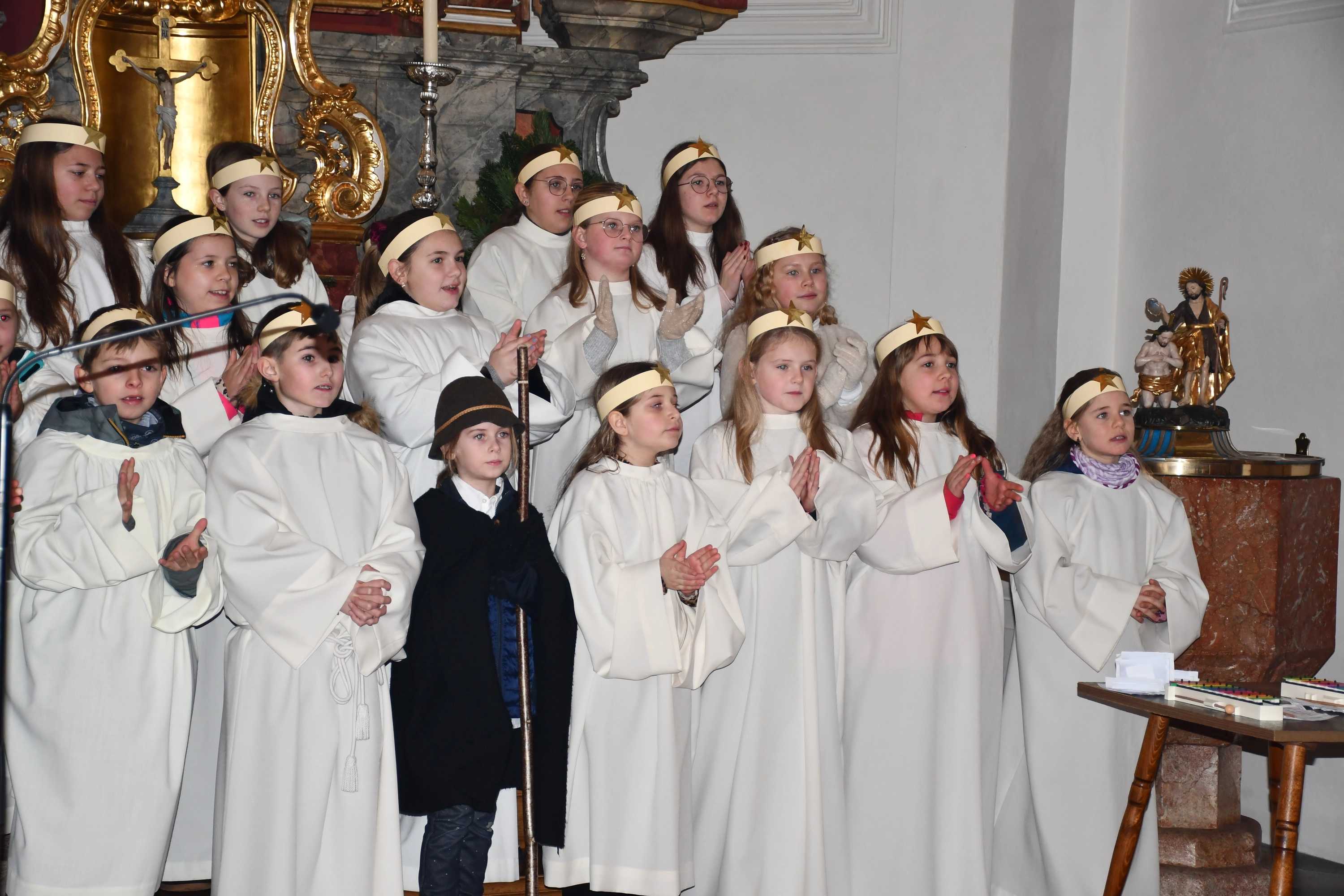 Die Weihnachtsgeschichte führten die Kinder mit viel Eifer wunderbar auf. Im Altarraum sang der Engelchor mit Josefine und erfreute die vielen ZuhörerInnen mit schönen Liedern. Hiermit ein herzliches Vergelts Gott für den großartigen Einsatz. Diese berührende Feier ist aus dem „Weihnachtsprogramm“ nicht mehr wegzudenken!
