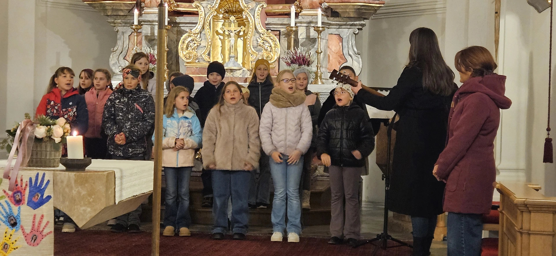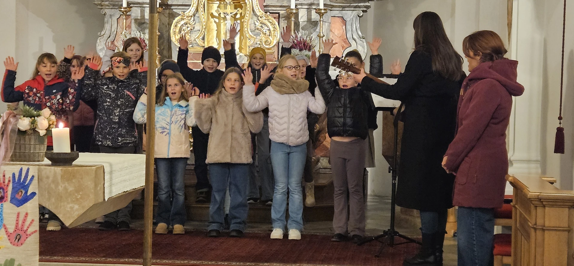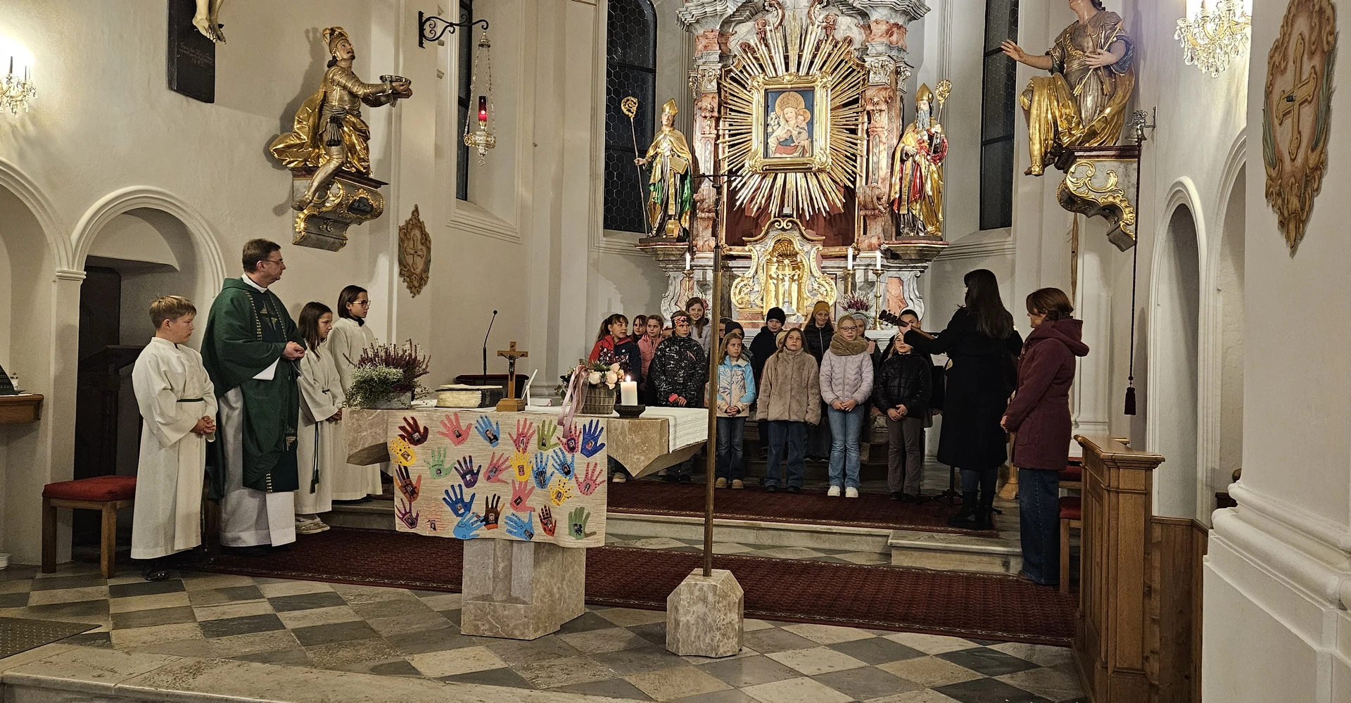 Gleich im Oktober gestalteten sie einen Vorabend-Gottesdienst mit wunderschönen Liedern und Texten. Es ist herrlich anzusehen, wie eifrig die Kinder mitmachen. Für die Betreuung gebührt den Leiterinnen Christa und Josefine mit ihren Helferinnen ein riesiges Dankeschön! Vor dem Altar konnten die KirchenbesucherInnen ein großartig gemaltes Bild bestaunen. Wir sind sehr froh, dass es in unserer Pfarre die Jungschargruppe gibt!