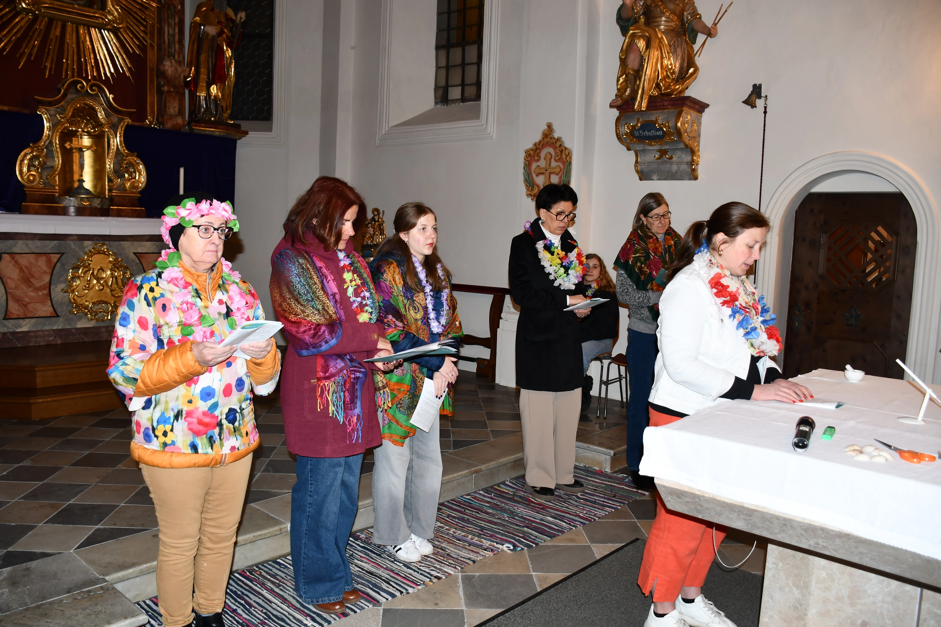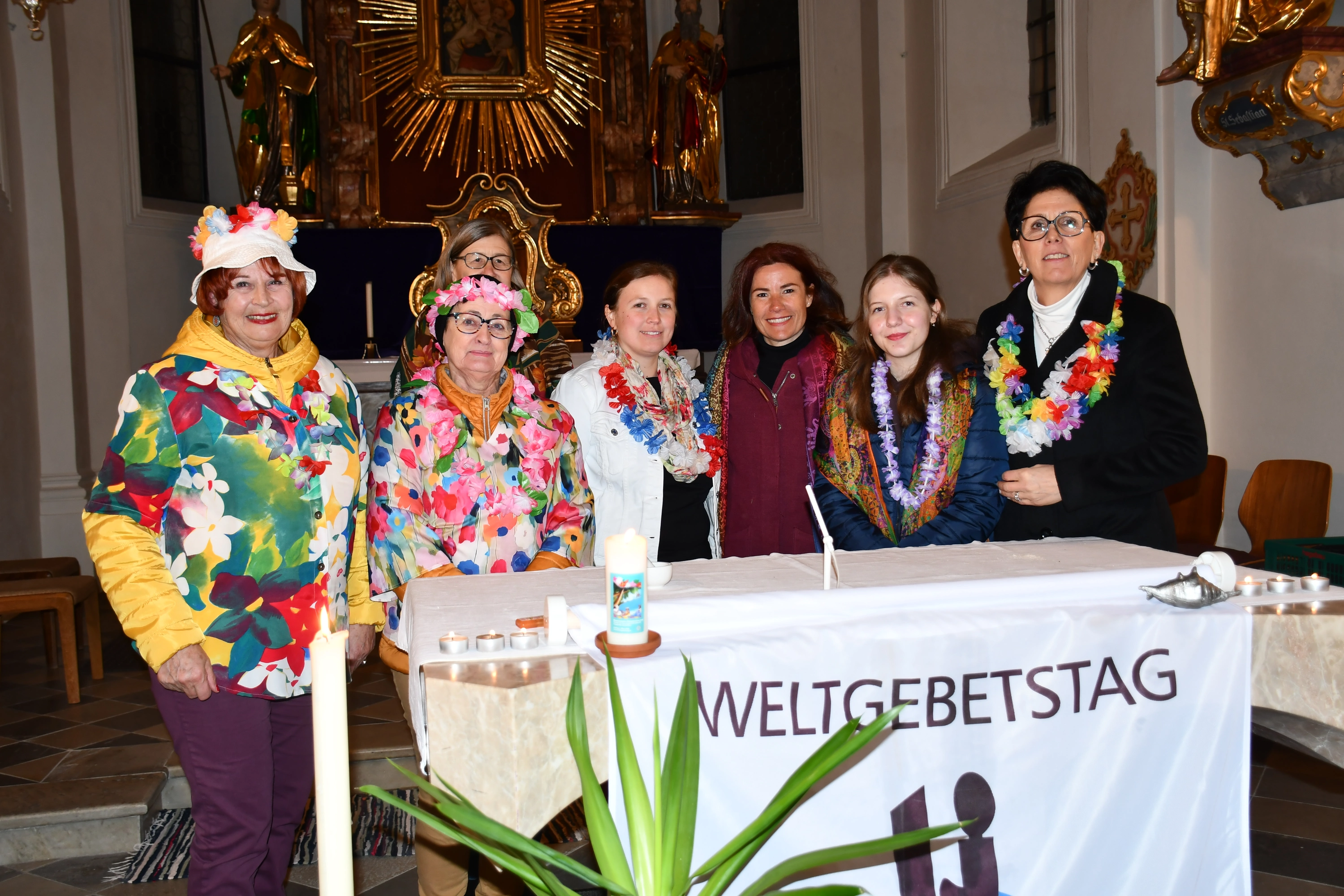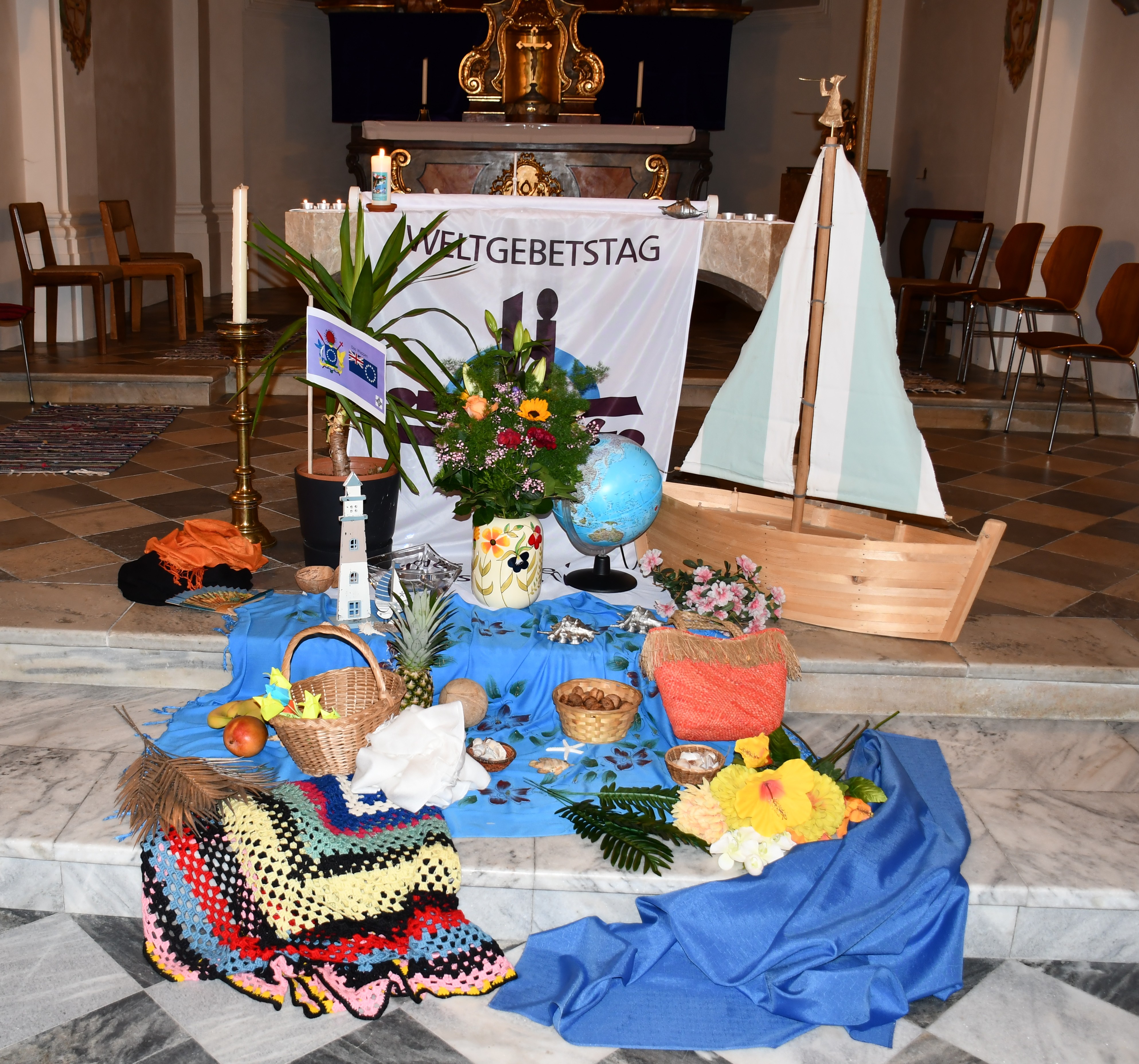 Dieser besondere Gottesdienst wurde heuer von den Frauen der Cookinseln vorbereitet. Das Motto lautete „wunderbar geschaffen“ in Anlehnung an Psalm 139, Vers 14. Ja, wunderbar geschaffen sind die 15 im Südpazifik gelegenen Inseln, die nach dem britischen Seefahrer James Cook benannt worden sind. In der Liturgie hörten wir drei Lebensgeschichten von den christlichen Schwestern. Alle drei Frauen richten ihre Ängste, Sorgen immer wieder an Gott und erleben, dass Gott ihnen hilft. In einem Videofilm sahen und hörten wir viel Interessantes und Schönes über die Inseln. Vor dem Altar konnten die BesucherInnen eine wundervolle Dekoration bewundern mit Blumen, Früchten und weiteren Gegenständen, die alle in Bezug mit den Inseln stehen. Die Kokospalme ist z. B. für die Bewohner der Cookinseln der Baum des Lebens. Das Boot symbolisiert die Ankunft des Christentums vor 200 Jahren. An dieser Stelle möchte ich meinem Team herzlich danken für die hervorragende Mitgestaltung, sowie dem Kirchenchor Stumm für die musikalische Unterstützung und Gerhard für die Filmvorführung. Den feierlichen Abend beendeten wir mit einer feinen, kleinen Agape.